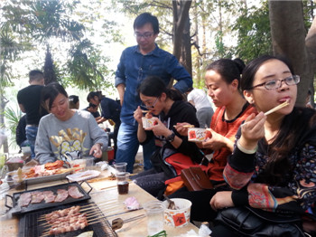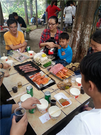 明城墻走湖活動結束后,公司又組織員工前往白馬公園燒烤區進行自行燒烤活動。
