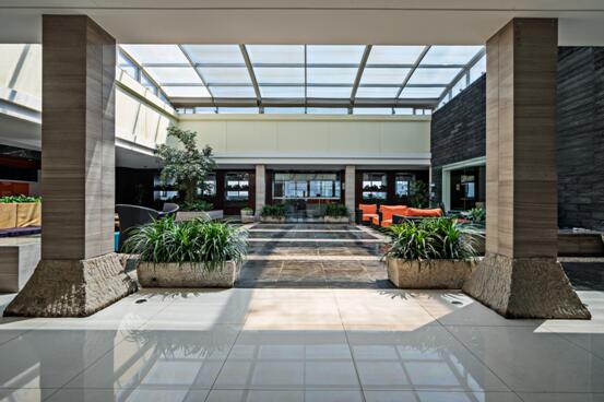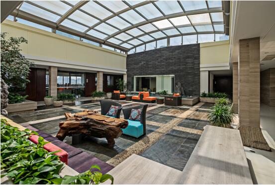 利用建筑自身特點,設(shè)計了陽光中庭, 中庭橫向12.3米, 橫向11.3米, 面積達到139平方, 中庭給室內(nèi)帶來了陽光, 帶來了微風(fēng), 帶來了活力, 體現(xiàn)了公司的情懷, 人置其中, 身心愉悅, 創(chuàng)造了一個非凡的空間氛圍。